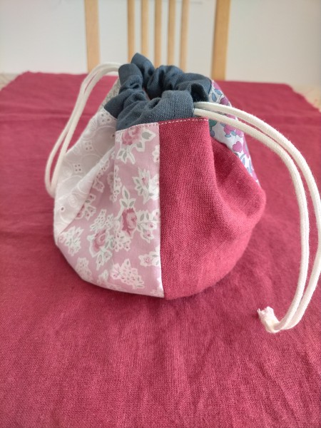 yasuminさんの動画を見て作りました。大好きな生地の森の赤いリネンとLIBERTY生地で作りました。