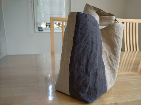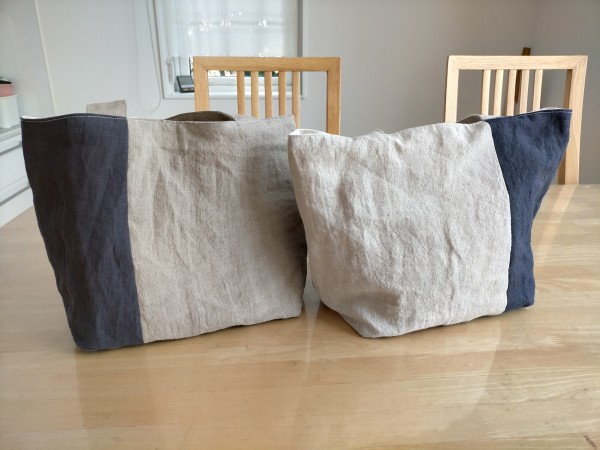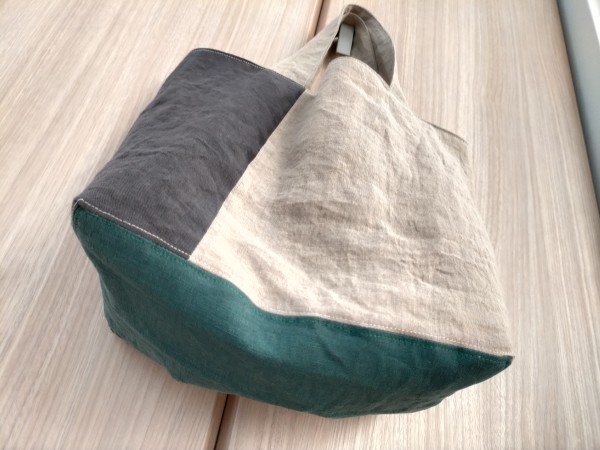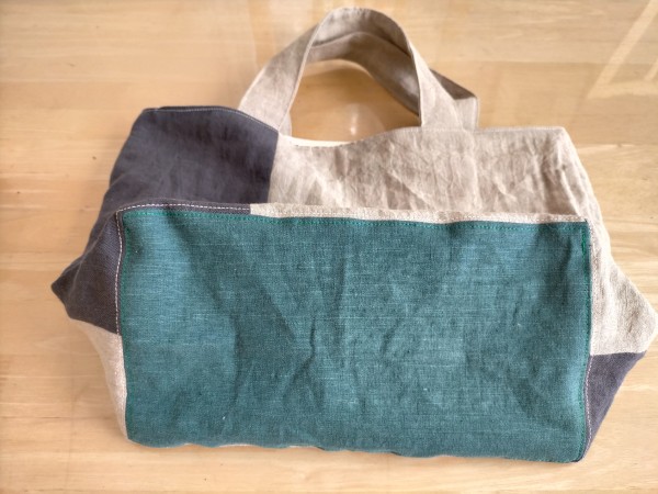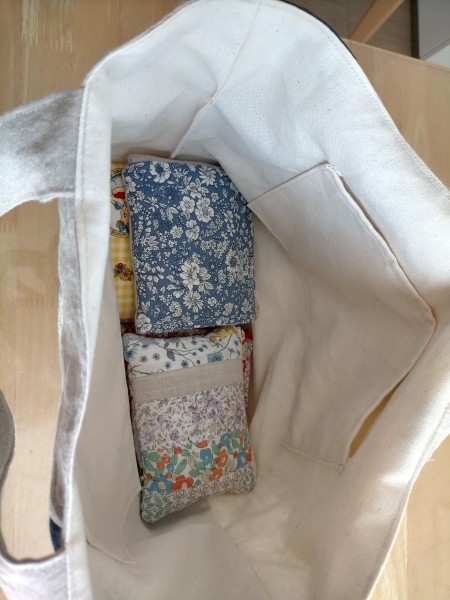 リネン生地のハギレで作りました。ハギレのサイズに合わせていくつも作りました。