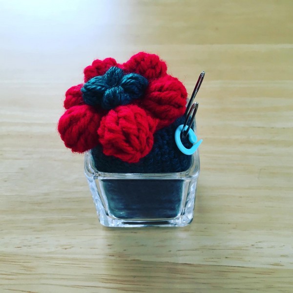 編み物に使うマーカーやとじ針をくっつけておく針山