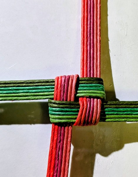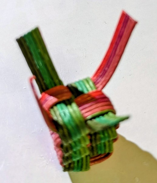 クラフトバンドの余り紐で、四つだたみのキーホルダーを作りました。
