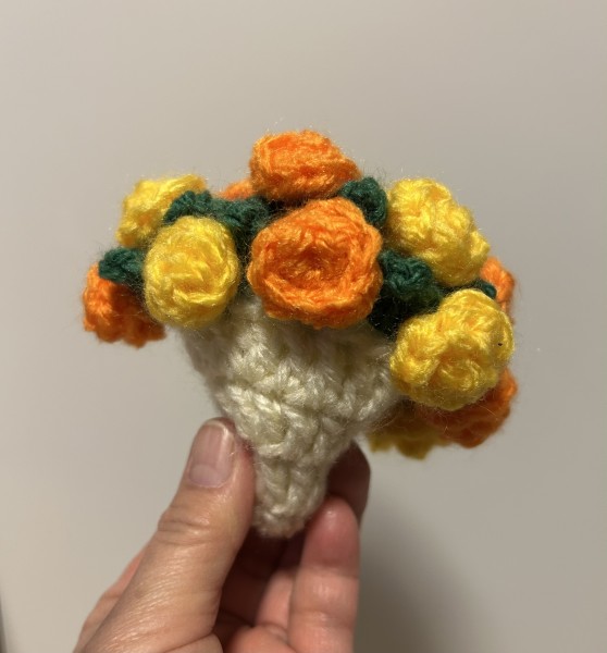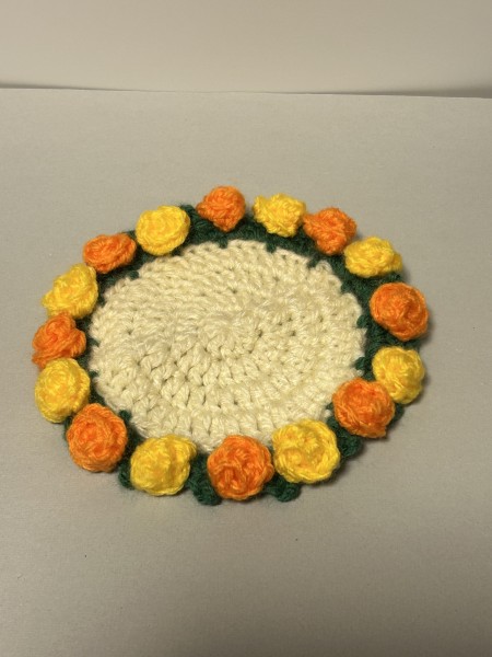 編み物が苦手な私ですが、冬になると編み物がしたくなります。YouTube(TUMUGIさん)を参考にさせていただき作りました。憧れのブーケブランケットは大きすぎて無理なのでブーケコースターにしました。