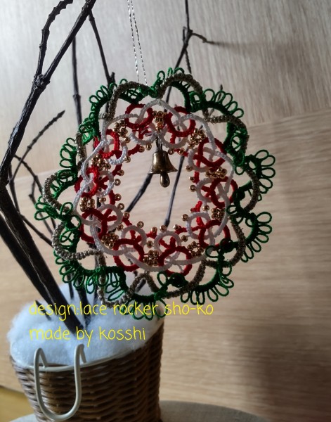 クリスマスなので、タティングレースでリース作成。