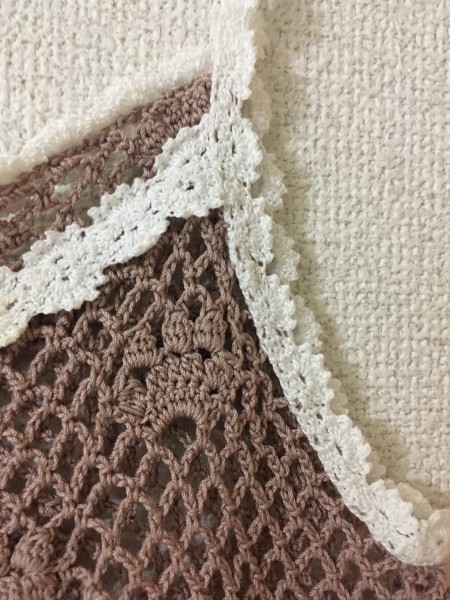 ベストです。肩紐も全て編みました。自分には丈が足りずに着た回数は少ないですが、初レース編みの服で思い出深く、時折眺めています。