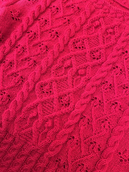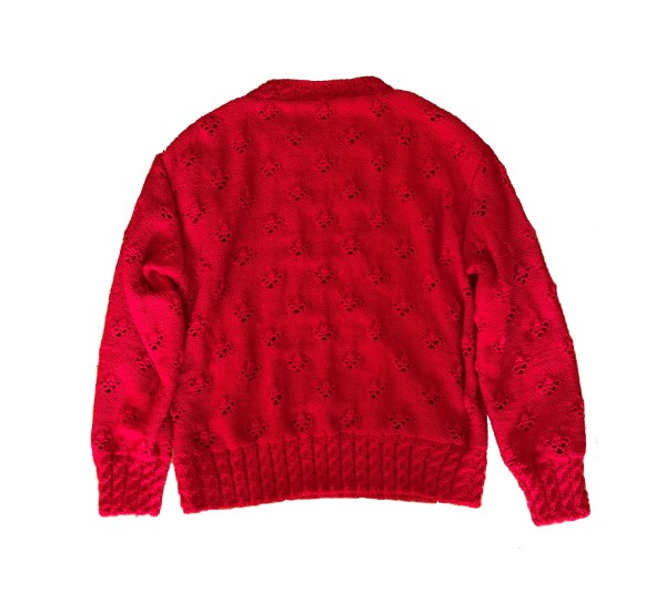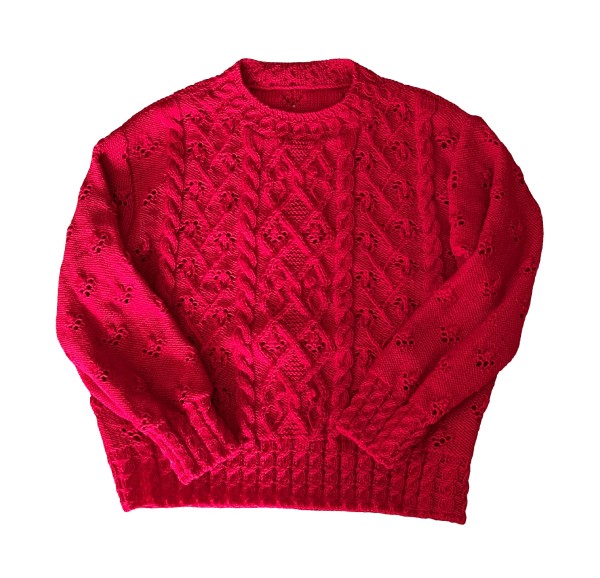 | アラン風の模様編みはボタニカルな要素を取り入れた模様にしました。 赤い糸でゆったりめに作りました。 編み方動画を公開しています。 https://youtu.be/2OtgW1zXy4s |