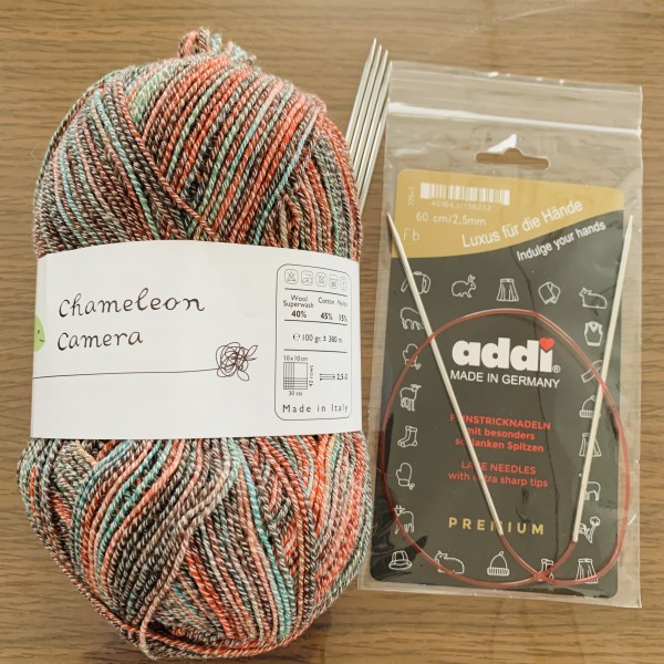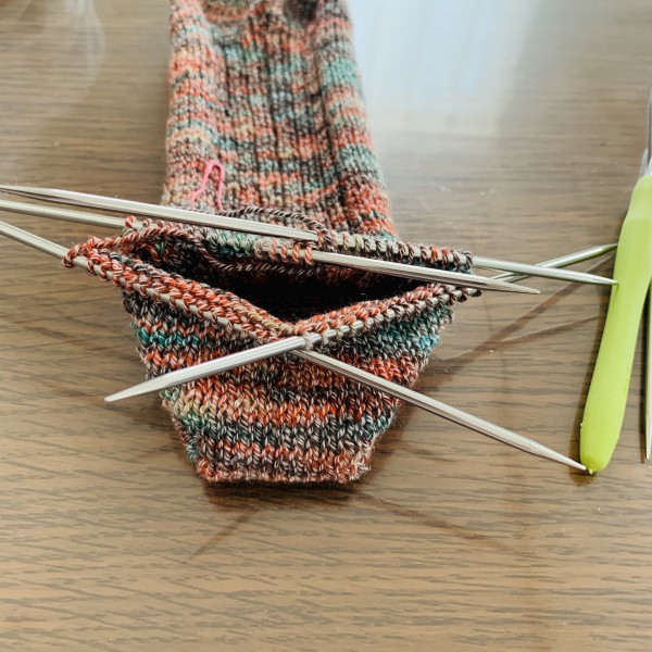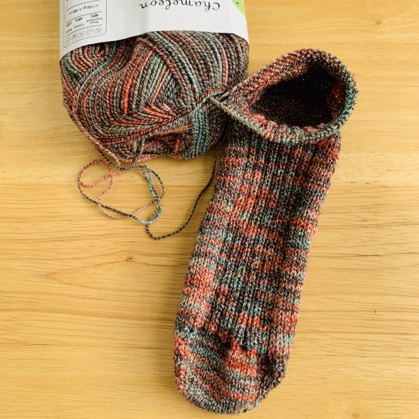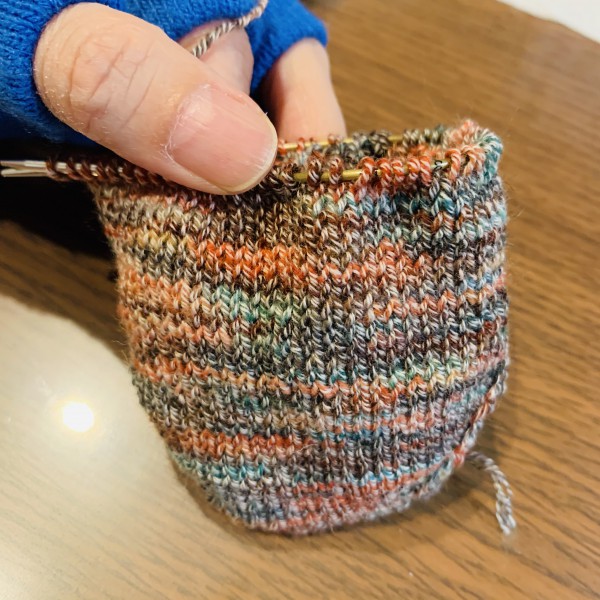 | サマーヤーンで靴下を編む。 今回もつま先から。 |