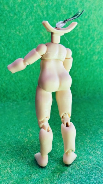 | 自作のボールジョイントドールボディーです。 古典的な紐引き構造ですが、材料と構造を激選して、重たい頭部をつけても、短時間なら自立する構造にしました! サイズはオビツ11と香港や台湾などで人気の1/8ドールの間ぐらいのサイズです。 首ジョイント、は、ねんどろいどやymyドールと互換性があります。 手は取り外しが必要だったのでどうしようかアレコレ悩みましたが、パーツにスリットを入れて、腕の方にソフトレジンを塗る事で解消しました! |