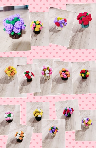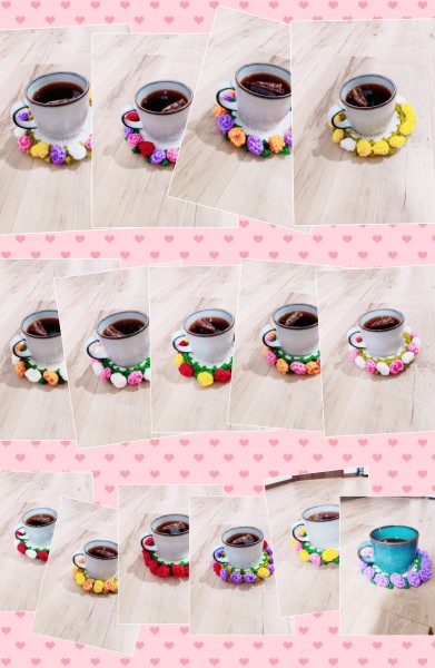 今流行ってる花束になるコースター作って見ました。黙々と作っていたらすごい数出来ていました。色んな色の組み合わせが楽しかったです。毛糸は100円ショップの毛糸を使用しています。