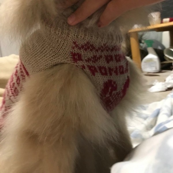 オリジナル図案をパンチカードとニットレーダーを使って編みました。手編みと違い24目1模様の制約。裏の渡り糸が長くなり過ぎないように、PONO//の文字の繰り返しに苦心しました。