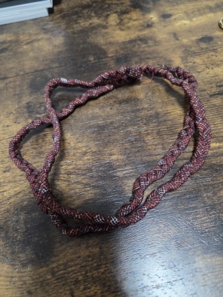 持ち手は細長くした生地を三つ編みにしました。