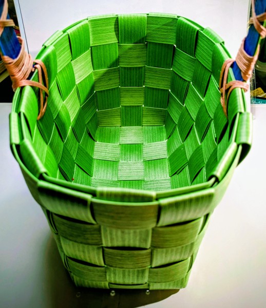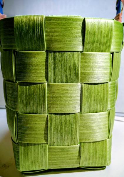 PPバンドで汚れても洗えて清潔感たっぷりで肌触りがいい ソフトな木目かごができました。