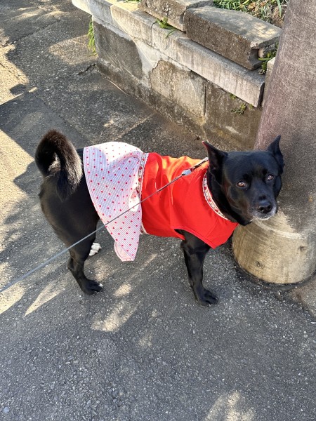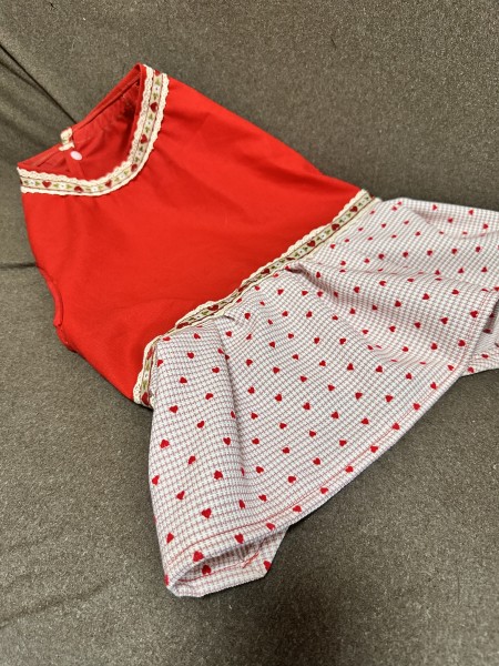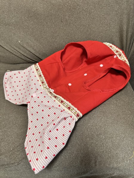 襟元とウエストにリボンテープです可愛く仕上げました。スカートにタックを入れすぎてボリューム出過ぎたのが反省点です。