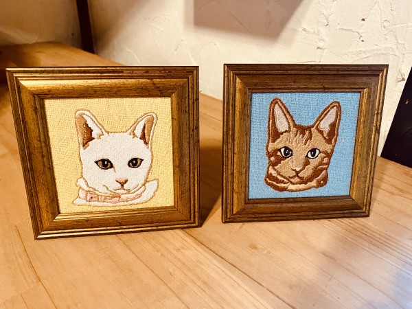 写真画像をイラストに描き、刺繍ミシンデータに変換し、ミシン刺繍しました。
