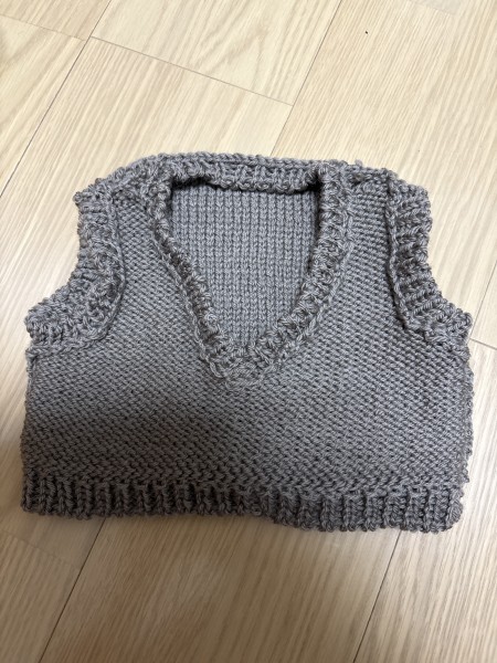 | 日本手芸普及協会棒針編み講師科のフォローアップ講座で編んだ、ミニチュア版のVネックベストです。 あくまで練習のため、あちこちかなりボロがでているのですが、等身大サイズのVネックベストの練習という位置付けで、自分のできてないところ、練習すべきところをしっかり把握することが目的だったので、それは達成できたかなと思っています。 |
