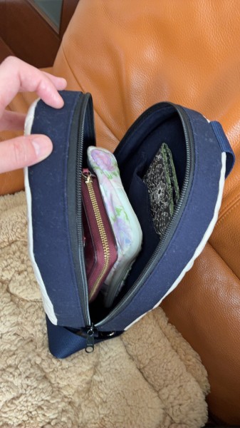 鎌倉スワニーさんの型紙で作成した楕円形のワンショルダーバッグ。ファスナーが長めなので中身の出し入れがサッと出来ます。アレンジして、外ポケットをつけました。