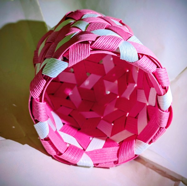 久しぶりにクラフトバンドで 鉄線編みの六つ目かごを作りました。