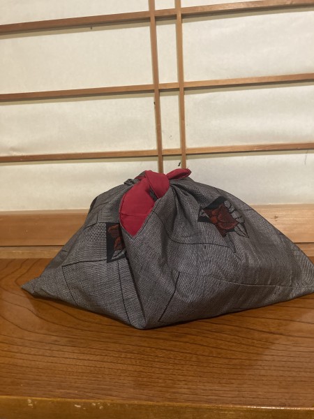 モモンガコートの余り布であずま袋を作りました。和風エコバッグです。裏地はこの着物の裏地をそのまま利用しました。