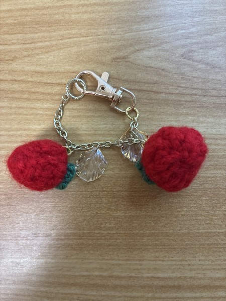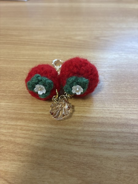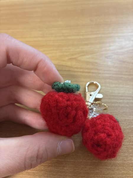 いちごの形を強調するため、細編みと長編みを使い分けて編んでみました。