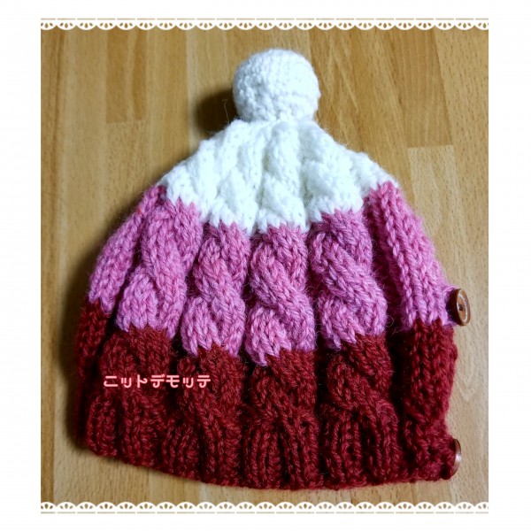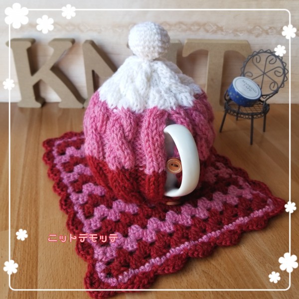 大好きな なわ編み模様を全体に入れたティーコージーを編みました。