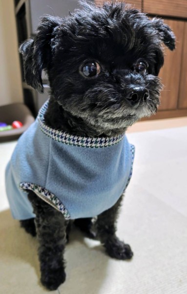 以前縫ったコートの残り生地で、愛犬の洋服を作りました。