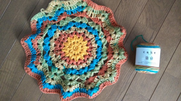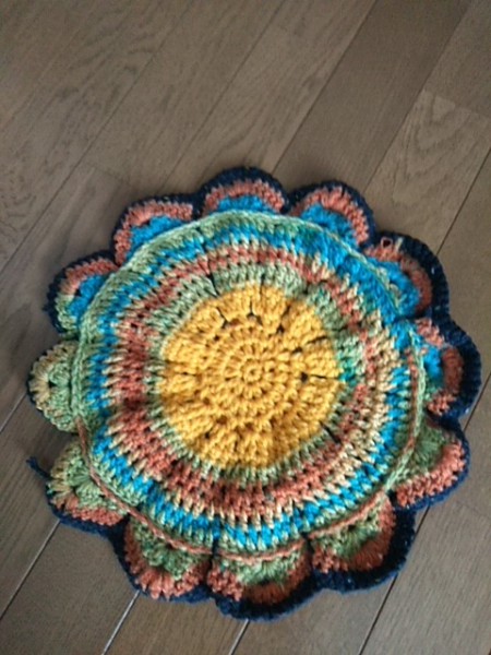 円座を編みました。ほんとは同じ物を2枚編んで編み合わせるのですが、糸が足りず、外出自粛中のため買いにも行けないので、裏はただ円に。