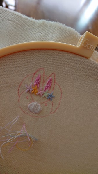娘の名前と、好きなウサギ。刺し方は判らないことばかりなので、まだまだ勉強&練習中です。