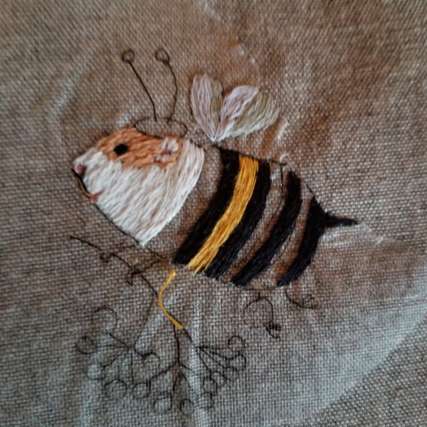 ワンポイント刺繍。 絵を描くように刺繍するようにしています。