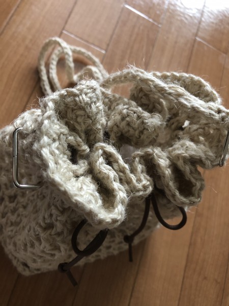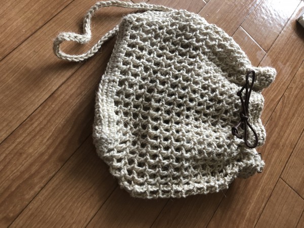 娘からのリクエストで、お財布とスマホが入るサイズです。麻紐は、コクヨのホワイトです。