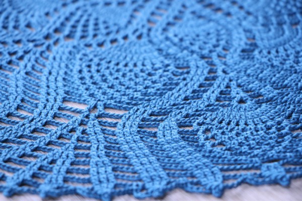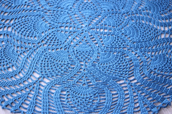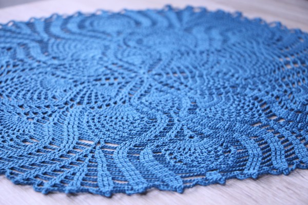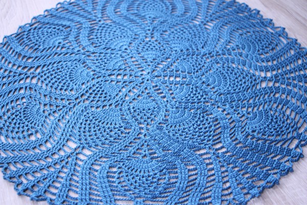 3つのパイナップルと波線の模様が印象的なドイリーです。