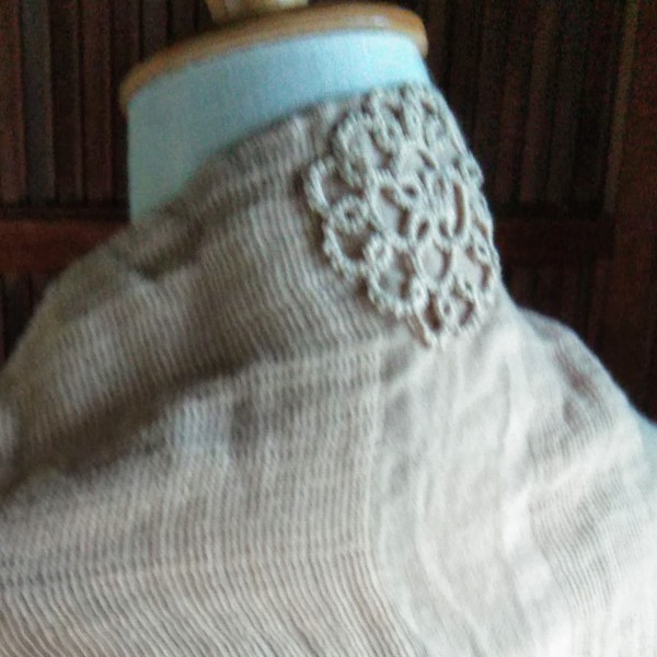 タティングレースのモチーフをサンプラー風にショールに留めました。