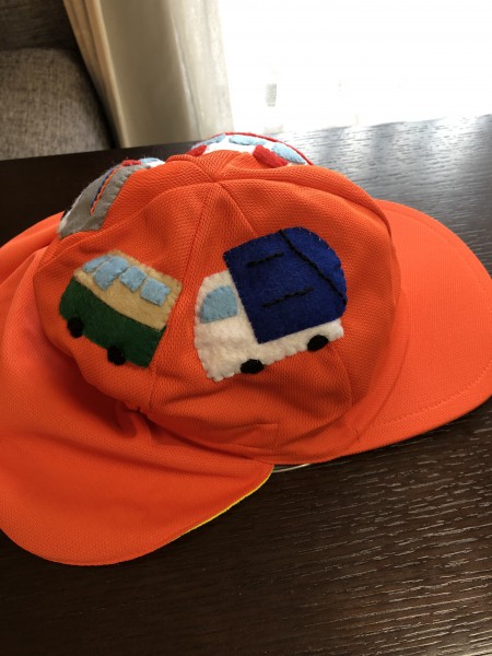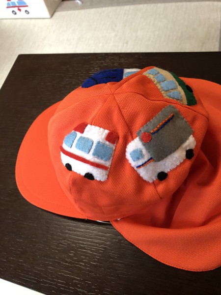 お孫ちゃんの幼稚園のカラー帽子をデコりました。
