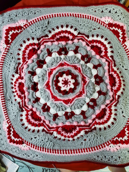 | 大物ブランケットに挑戦。 海外のキット使用。説明書も英語。これは良い経験。 アクリル100なのにふわっふわで気持ちのよい毛糸です。 |