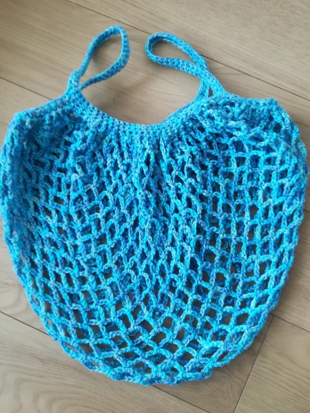 二本取りでネット編みのバッグ。玉ねぎ入れにしています^_^