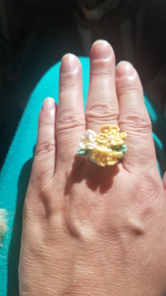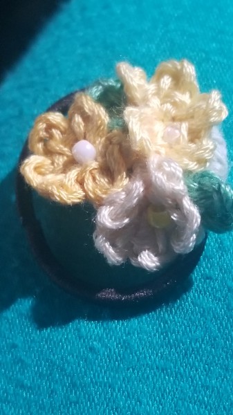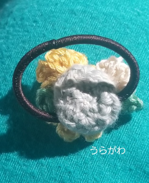 刺繍糸で編み、コットン糸の土台に縫い付けました。