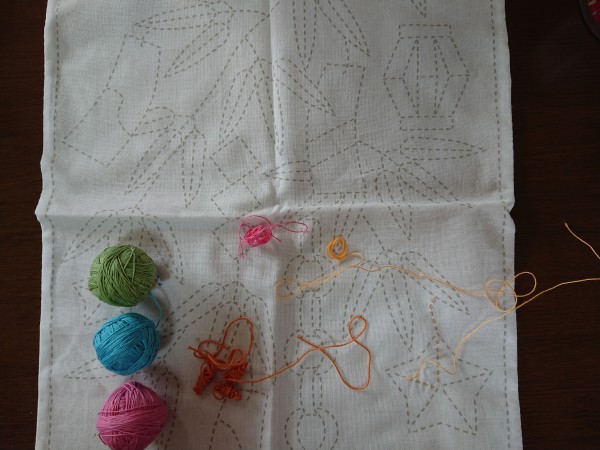 黄色系刺し終わり。 次はピンク。 外枠は何色にしようか悩み中。