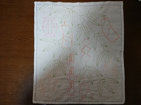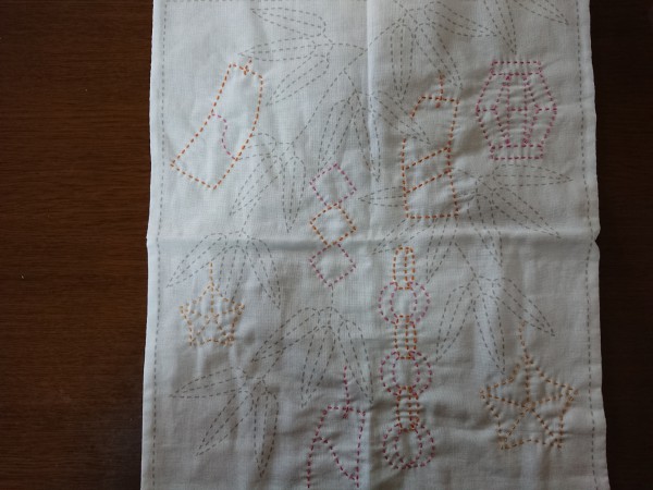 ピンク糸おわり。 次はみどりの笹の葉と外枠。