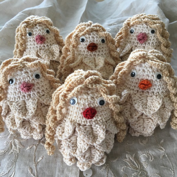 #knitcafeivyさんのレシピで新作ミニアマビエを作った。足が付いているので、すごく早く出来て、楽しかった。