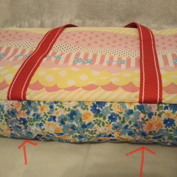| 作りかけのスカートに取り掛かろうと思っていましたが、ピアニカケースが必要だとわかり無料型紙工房ことろさんのボストンバッグの型紙で急遽作成です。 縫い方はことろさんの作り方を参考にしながら、自分なりに作ります。 防水生地が薄目なので、持ち手の強度をつけるために、表と裏地の中でも持ち手を繋げ補強しました。(4枚目の写真の矢印のところ) 表と裏地を裏地のところ(5枚目の写真の矢印をしてあるところ)で、ぐるりとまつり縫いました。 |
