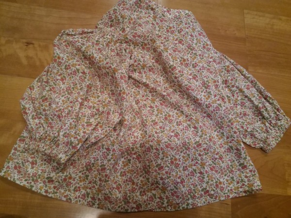 | ギャザー袖の衿なしのブラウスです 型紙は「M174 ラッフル&ギャザーブラウス 」を使用。 着てみたら意外と首周りがゆったりしていて苦しくないし、袖が大きくても動きの邪魔にならないし、手持ちの服とも丈などちょうど合いました。 結果、ものすごく気に入ったので、さっそく2枚目を作ります。 |