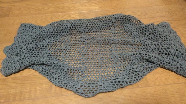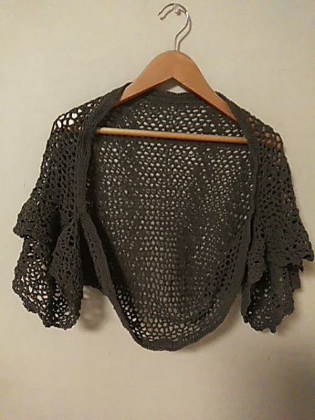 コットンヤーンでボレロとマーガレットの間みたいなのを作りました。袖だけパイナップル編みです。