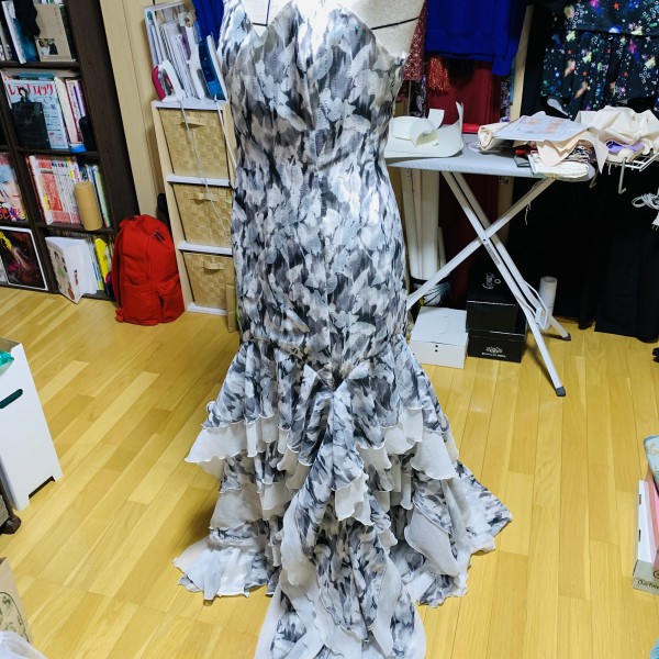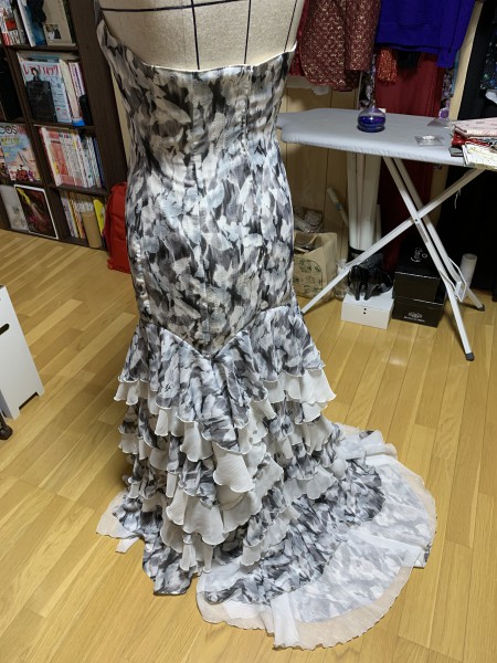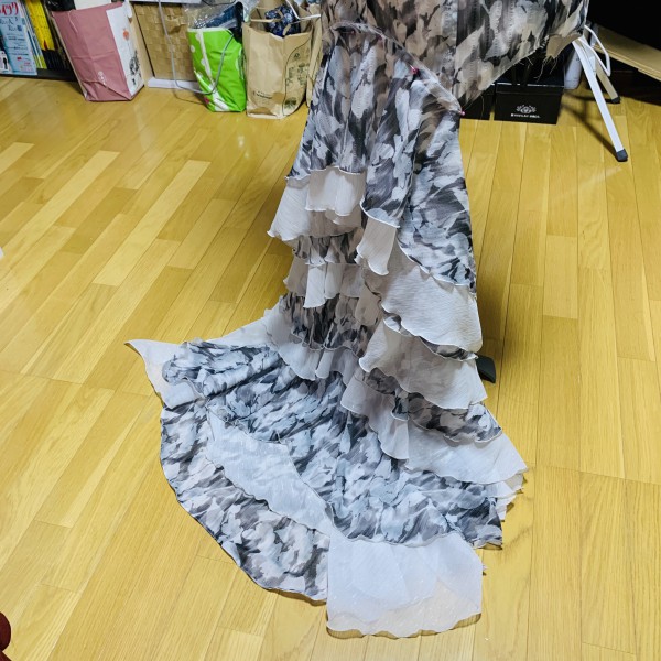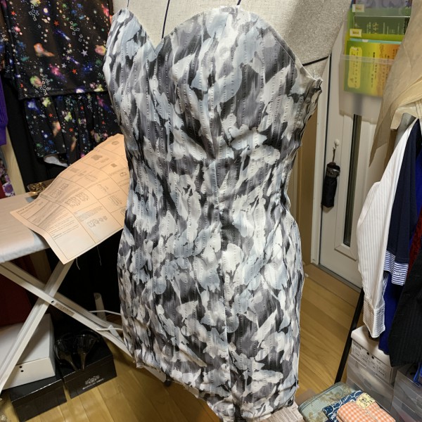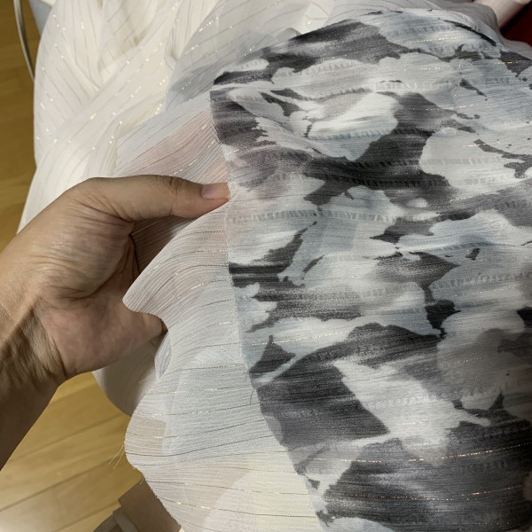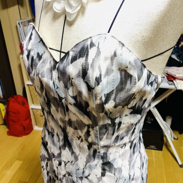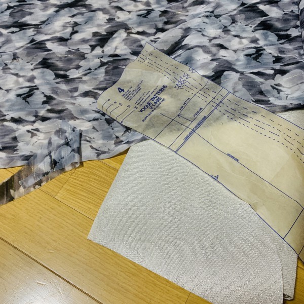 裁断(1) 表布:メタリックストライプ入りジョーゼット 表下地:ラメ糸クロスジャカード