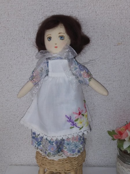 顔を描くのが難しいです。 エプロンも刺繍しました。