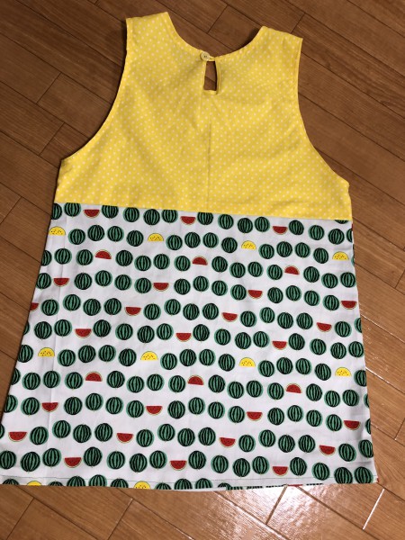 子供達に喜ばれるように、ニコニコ顔のスイカのポケットをつけました。