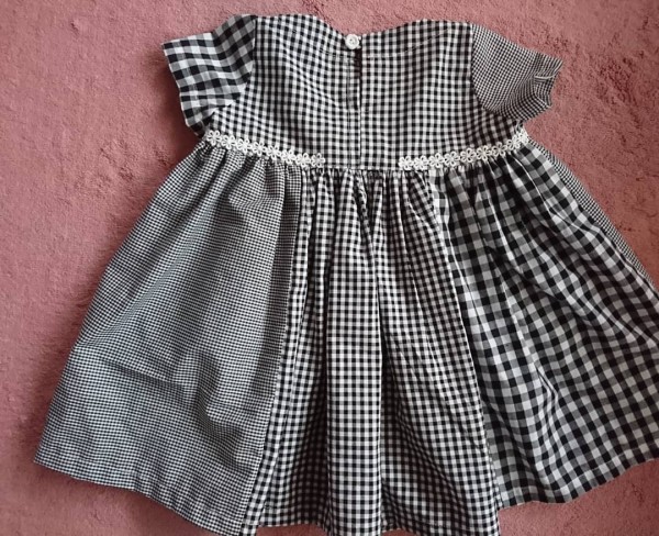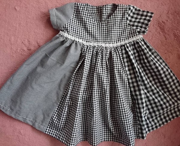 最初は二種類のギンガムチェックのワンピースにしようと思っていましたが、三種類のチェックのシャツを着た人を見て可愛かったので変更しました。