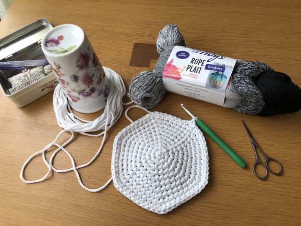 変わった細編みで編み地がしっかりし、バッグには最適な編み方でした。