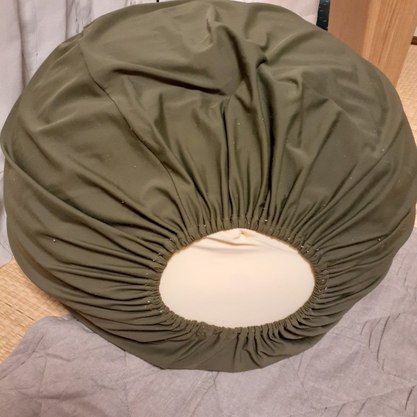 | 『王様の腰掛け』のカバーを作りました!座り心地が良くてきにいってるんだけど素材かポリエステルなのとゴム仕様なのが残念(>_<) 綿素材でファスナーのカバーを作りました |