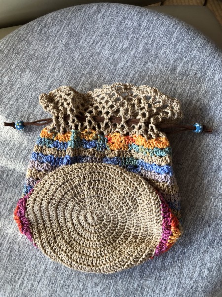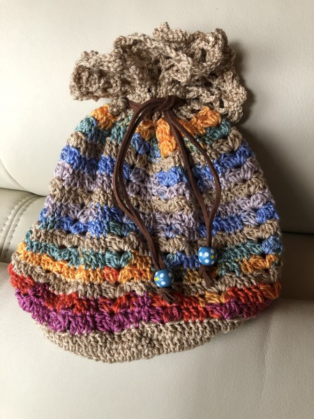 がま口で使った糸と合わせて巾着を作りました。