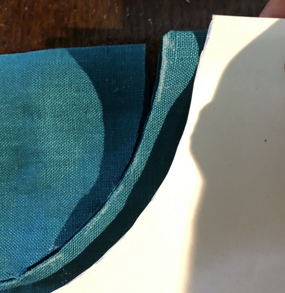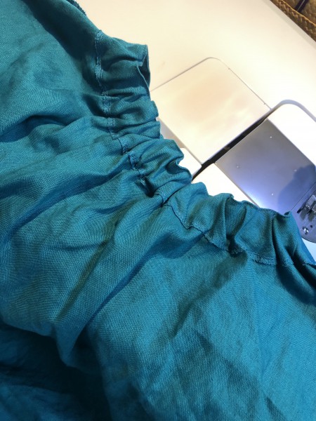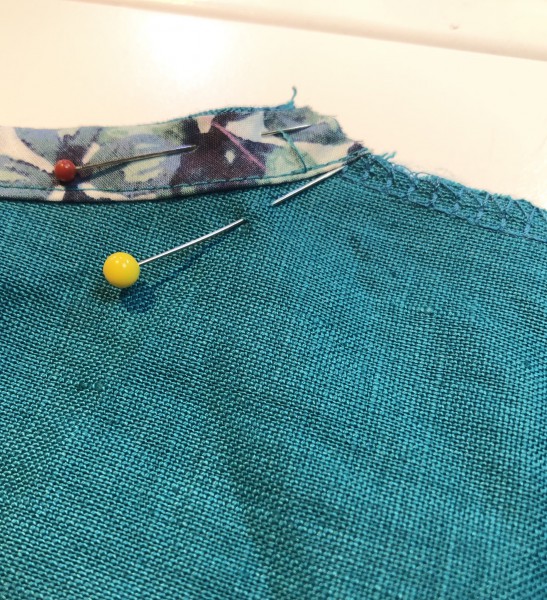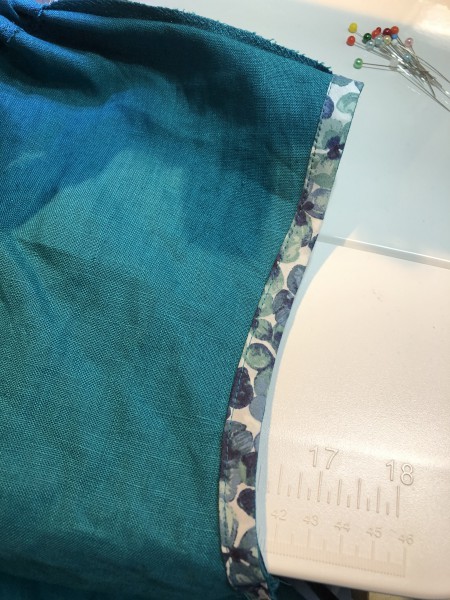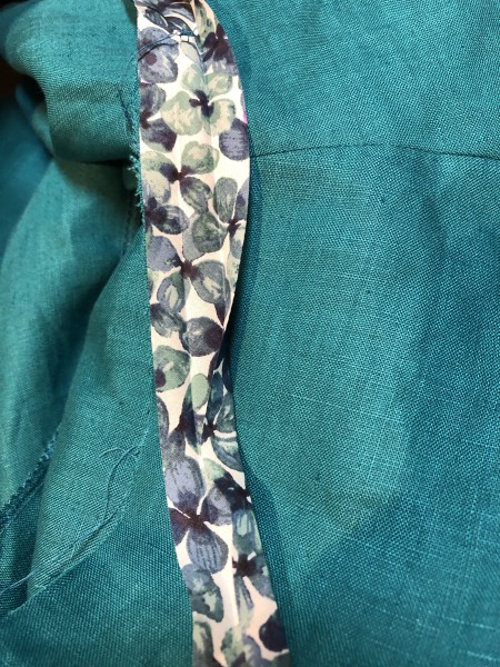 今回、袖ぐりにはリバティのバイアスが内側だけに着きます。