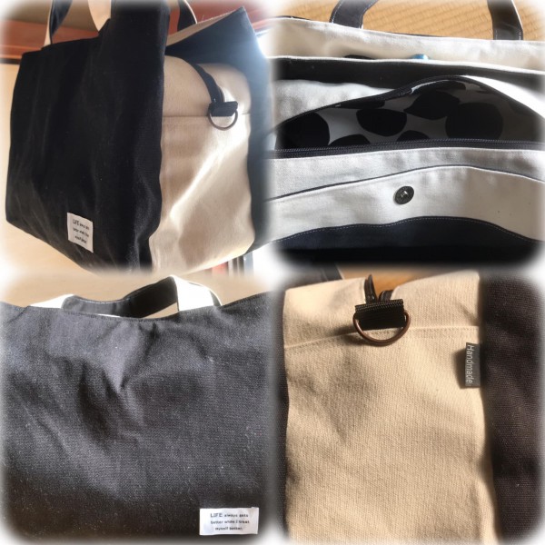 帆布生地の三つ子バックになります