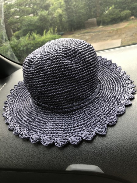 コットンラフィアでスカラップハットを編みました。コットンラフィアの動画を参考にしました。