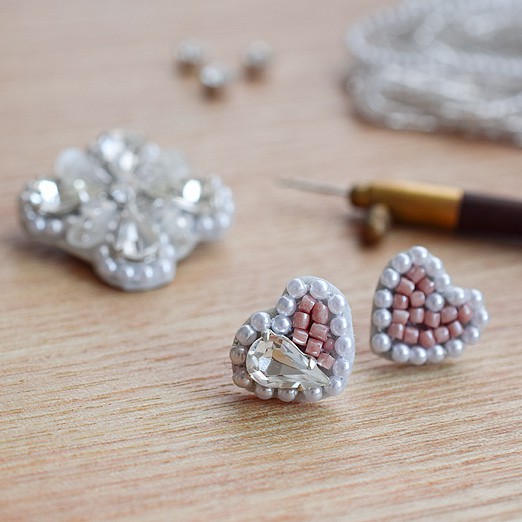 しずく型のラインストーンを活かした刺繍アクセサリーです。